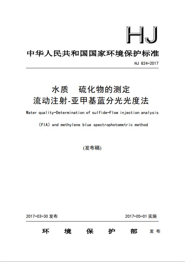 水質(zhì) 硫化物的測定 流動注射-亞甲基藍(lán)分光光度法(HJ 824-2017)
