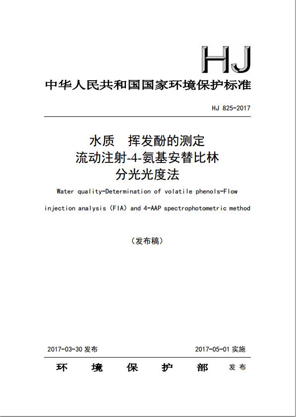 水質(zhì) 揮發(fā)酚的測定 流動注射-4-氨基安替比林分光光度法(HJ 825-2017)