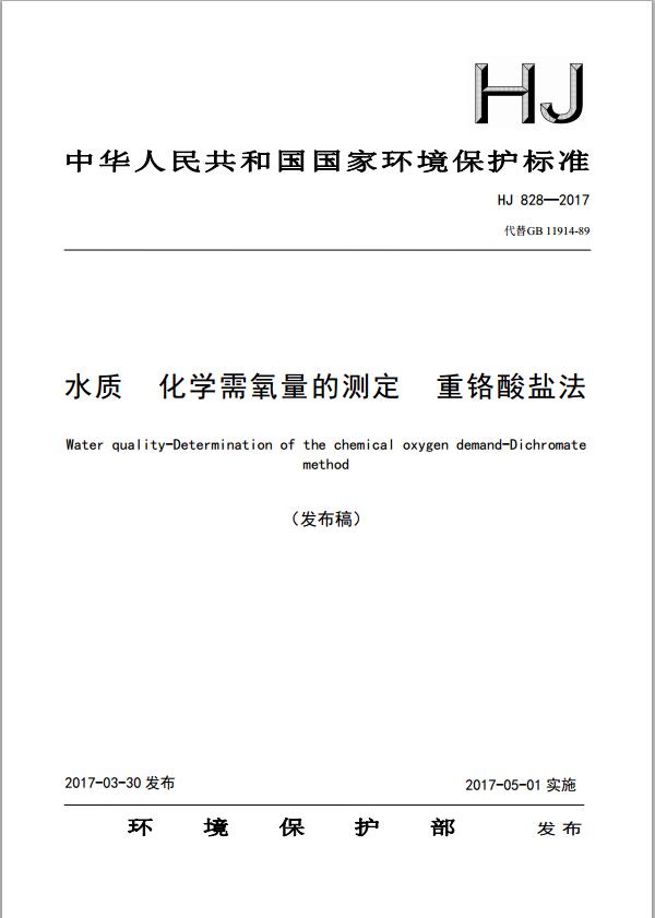 水質(zhì) 化學(xué)需氧量的測定 重鉻酸鹽法(HJ 828—2017代替GB 11914-89)