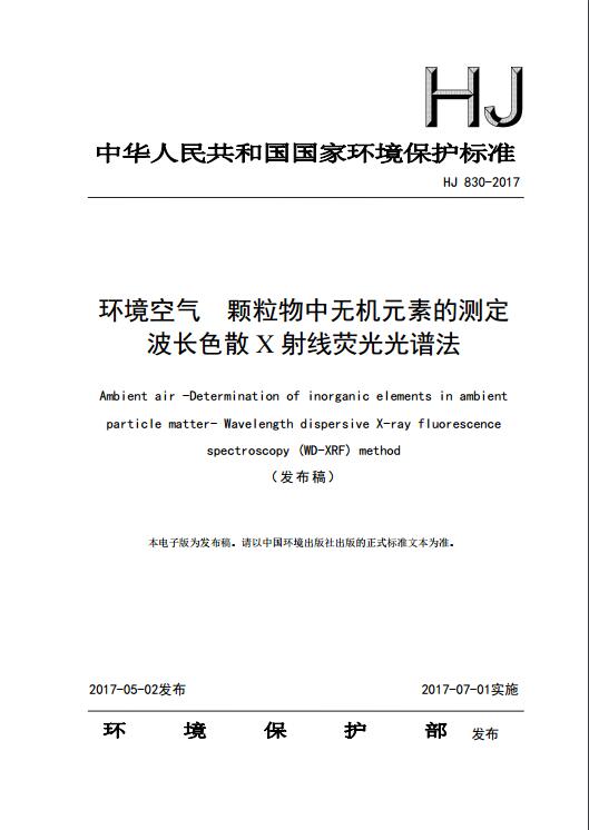 環(huán)境空氣 顆粒物中無機(jī)元素的測定 波長色散X射線熒光光譜法(HJ 830-2017)