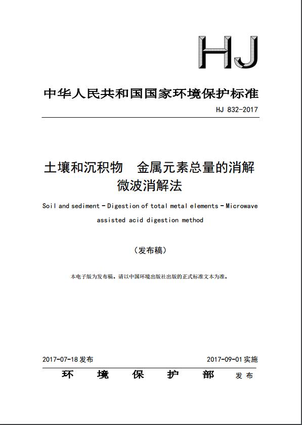 土壤和沉積物 金屬元素總量的消解 微波消解法(HJ 832-2017)
