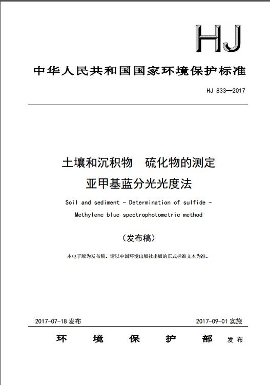 土壤和沉積物 硫化物的測定 亞甲基藍(lán)分光光度法(HJ 833—2017)