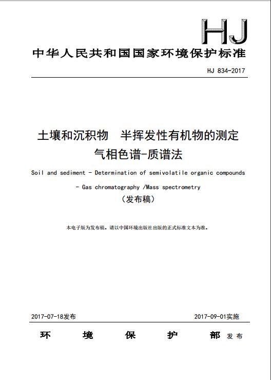 土壤和沉積物 半揮發(fā)性有機(jī)物的測定 氣相色譜-質(zhì)譜法(HJ 834-2017)