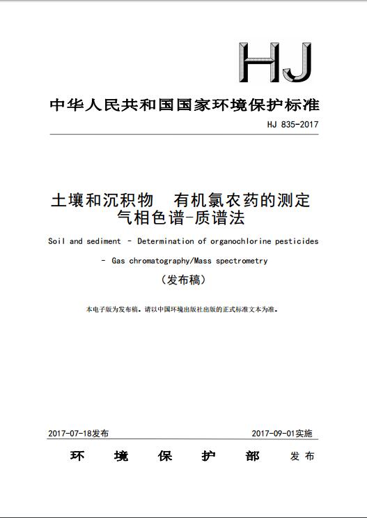 土壤和沉積物 有機(jī)氯農(nóng)藥的測定 氣相色譜-質(zhì)譜法(HJ 835-2017)